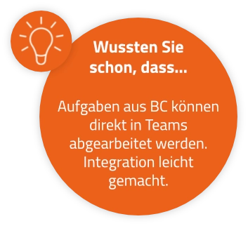 Structure through bucket lists: Clearly organised task distribution directly from Business Central in Microsoft Teams.